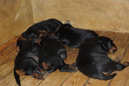 Ambre du Gourg d'Enfer et Alban du Jardin des Auberts ont la joie de vous annoncer les naissances le 12 juin de 4 femelles et 5 mâles.