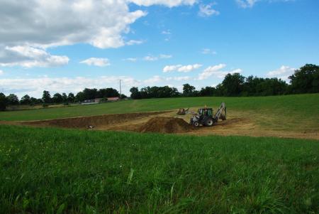 Avec un terrain argileux on devrait pouvoir retenir l'eau. Surtout lorsque des sources arrivent sur le terrain.