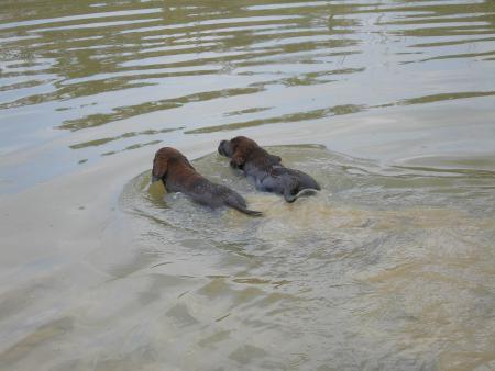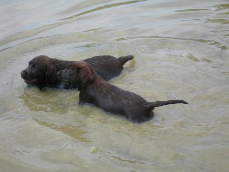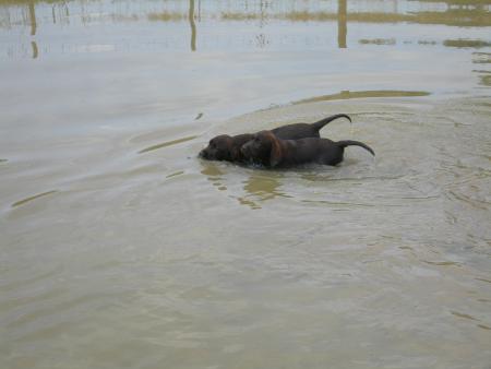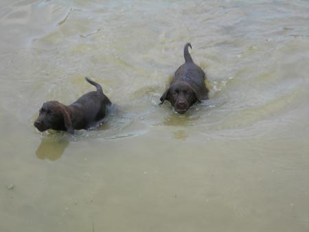 CREOLE ET CHANNEL DU GOURG D'ENFER savent nager.